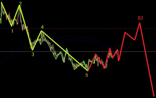 歐日的這個高位此時不好確定是1浪還是A浪,后面的操作C浪位置出掉為好。