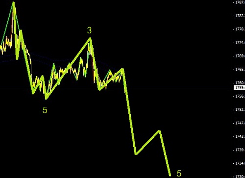 映射到黃金白銀上,對比黃金弱一點,所以臨時選擇黃金做空比較好一點,前面的朝五正在逐步出現效果,目標看到1732一線!